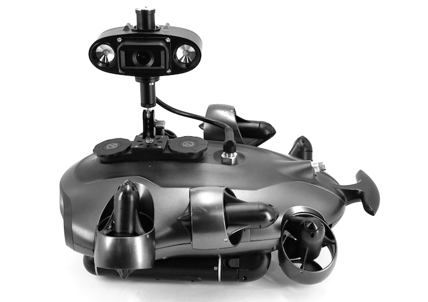 Podgląd wideo w czasie rzeczywistym i kontrola z lądu dzięki instalacji pod wieloma kątami. Uzupełnij główną kamerę o dodatkowe ujęcia i perspektywy podwodne rejestrowane jednocześnie.